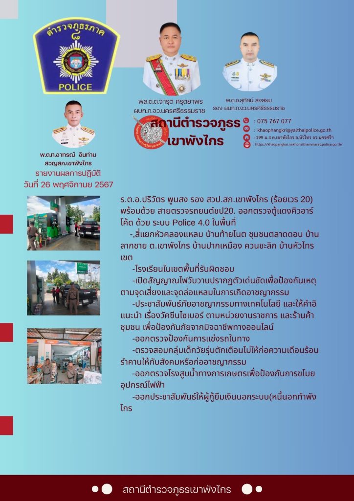 – ประชาสัมพันธ์ข้อมูลข่าวสาร ข้อมูลจราจร การดูแลความปลอดภัยในชีวิตและทรัพย์สิน