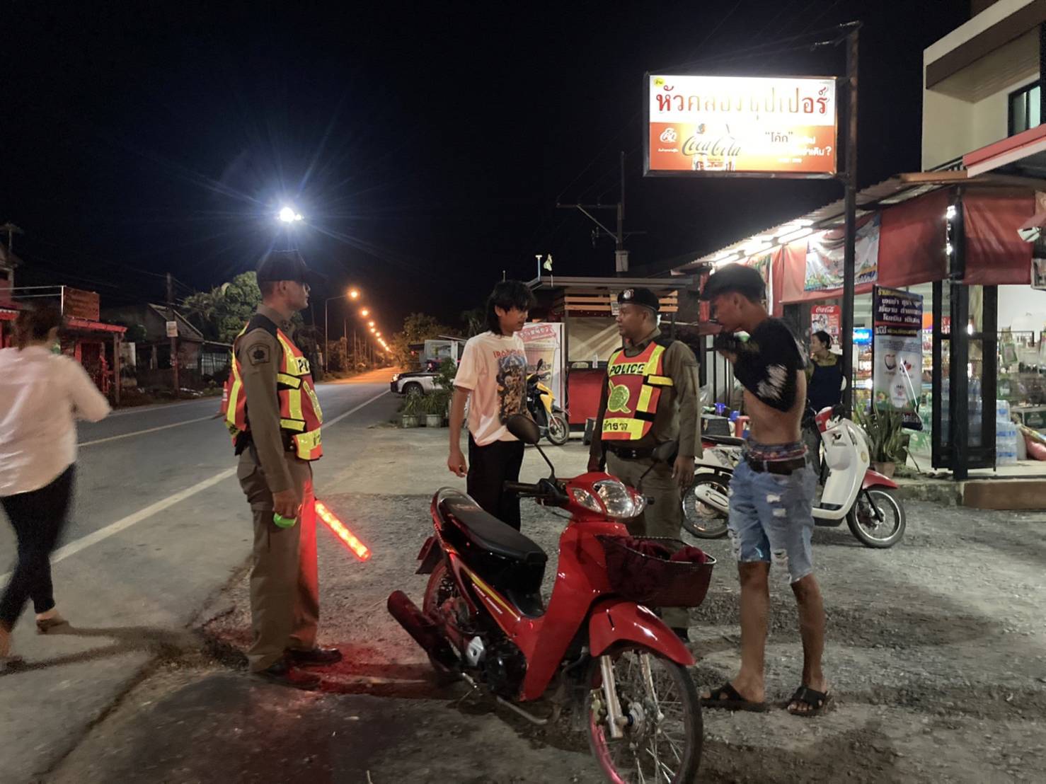 วันที่ 31 ม.ค.67 เวลา 22.00 น. ภายใต้การอำนวยการของ พ.ต.ท.อาทรณ์ อินท่าม สวญ.สภ.เขาพังไกร พ.ต.ต.วิษณุ แจ่มจันทร์ สวป.สภ.เขาพังไกร สั่งการให้ ร.ต.อ.ปริวัตร พูนสง รอง สวป.สภ.เขาพังไกร (ร้อยเวร 20) พร้อมด้วย สายตรวจรถยนต์ ชป.20 ออกตรวจสอบว่ากล่าวตักเตือนกลุ่มวัยรุ่นในพื้นที่ไม่ให้ก่อความเดือดร้อนสร้างความรำคาญให้กับสังคม และก่ออาชญากรรมในพื้นที่ และแนะนำให้กลับบ้านหาผู้ปกครอง