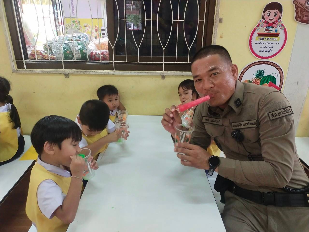 วันที่ 11 ม.ค. 67 เวลา 11.00 น. ภายใต้การอำนวยการของ พ.ต.ท.อาทรณ์ อินท่าม สวญ.สภ.เขา พังไกร มอบหมายให้ พ.ต.ต.วิษณุ แจ่มจันทร์ สวป.สภ.เขาพังไกร , ชป.20, ชป.ชมส.สภ.เขาพังไกร และเจ้าหน้าที่ตำรวจจิตอาสา สภ.เขาพังไกร ร่วมโครงการส่งเสริมการศึกษา กิจกรรมพัฒนาการเรียนรู้ ของเด็ก, โครงการรณรงค์สร้างจิตสำนึกให้เคารพกฎจราจร มีวินัยในการขับขี่ การใช้ทางให้กับ ครู นักเรียน ผู้ปกครอง ณ ศูนย์อบรมเด็กก่อนเกณฑ์วัดควนชะลิก ม.4 ต.ควนชะลิก อ.หัวไทร จว.นครศรีธรรมราช และได้สนับสนุนจัดเลี้ยงไอติมหลอดแก่เด็ก ๆ ณ ศูนย์พัฒนาเด็กเล็กฯ